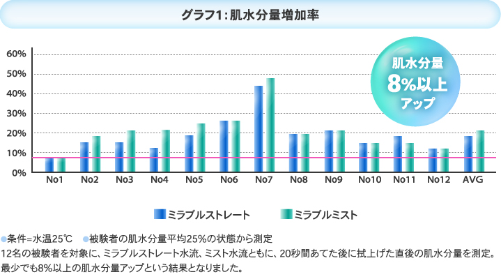 「ミラブルで乾燥する」という口コミがありますが、実はサイエンス社の実験で、ミラブル使用後の肌水分量が8%以上アップしたことが証明されています。