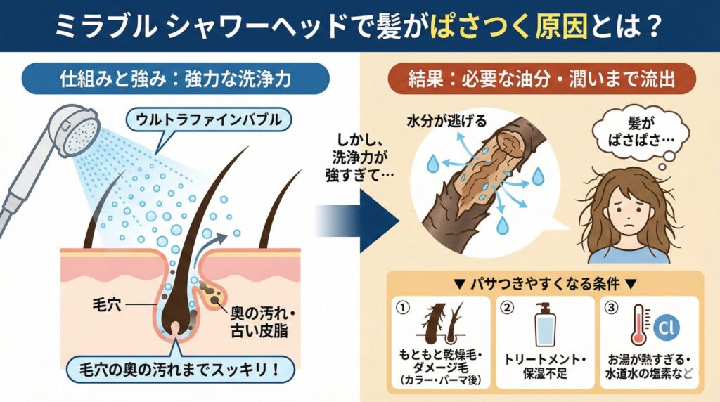 ミラブルを使うと「髪がパサパサになった」と感じる声がありますが、その多くは使用環境や髪質に関係しています。ここでは専門家の知見をもとに、その原因を詳しく見ていきましょう。