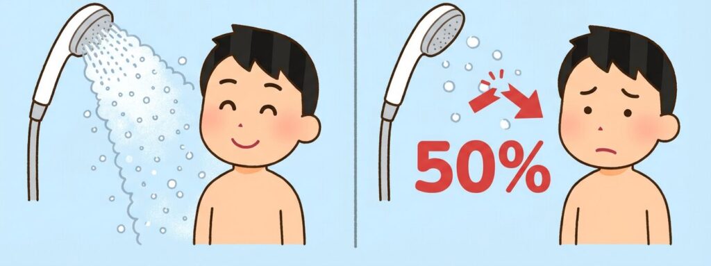 そのまま使えば、汚れた水を毎日体に浴びている状態です。肌荒れやニオイのトラブルにもつながりかねません。