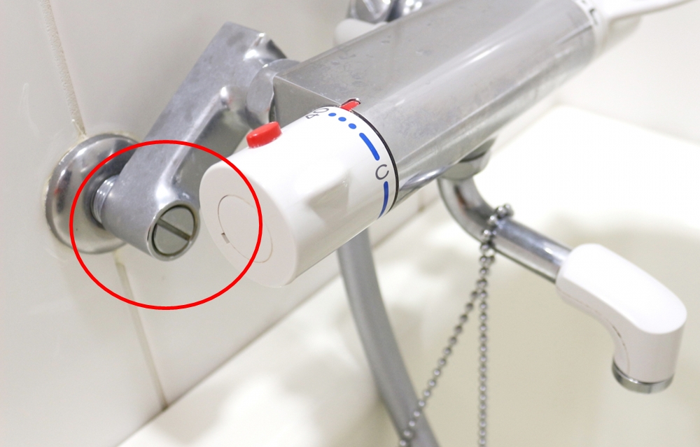 止水栓の場所を確認するお風呂の蛇口の下あたりに2つある(右が水・左がお湯)
